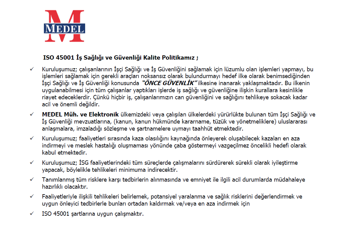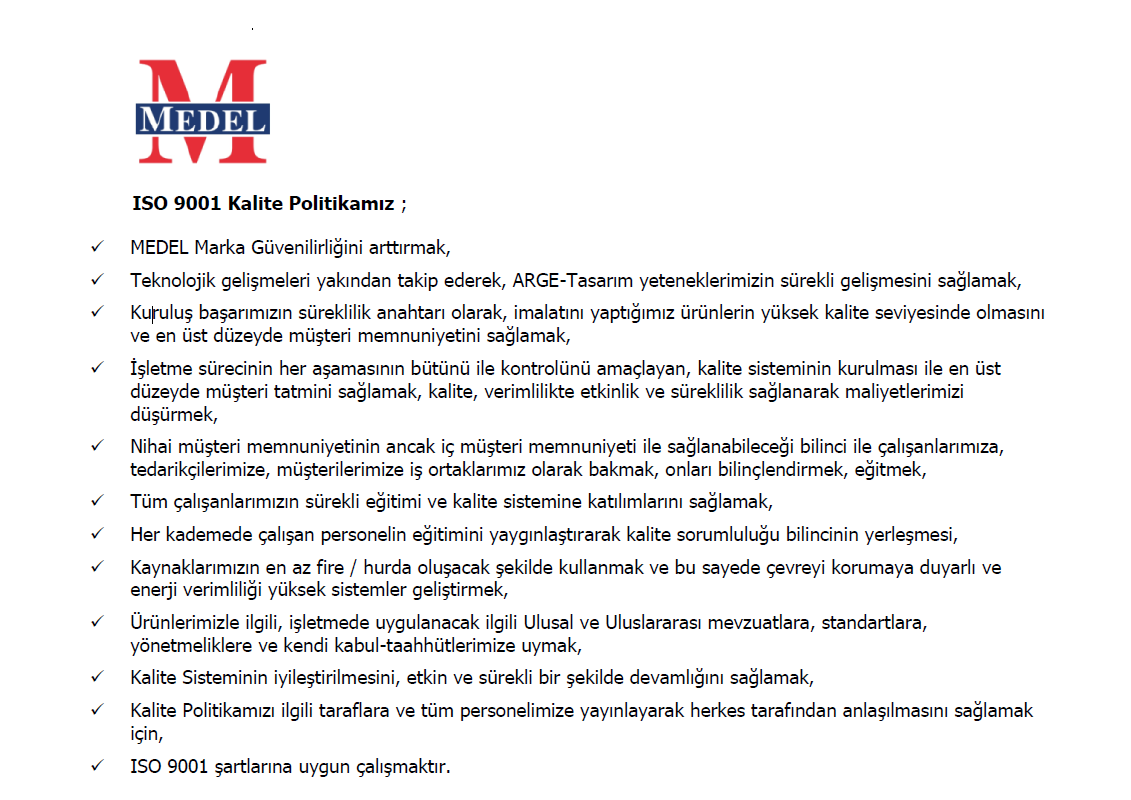 Medel Elektronik | Sertifikalar