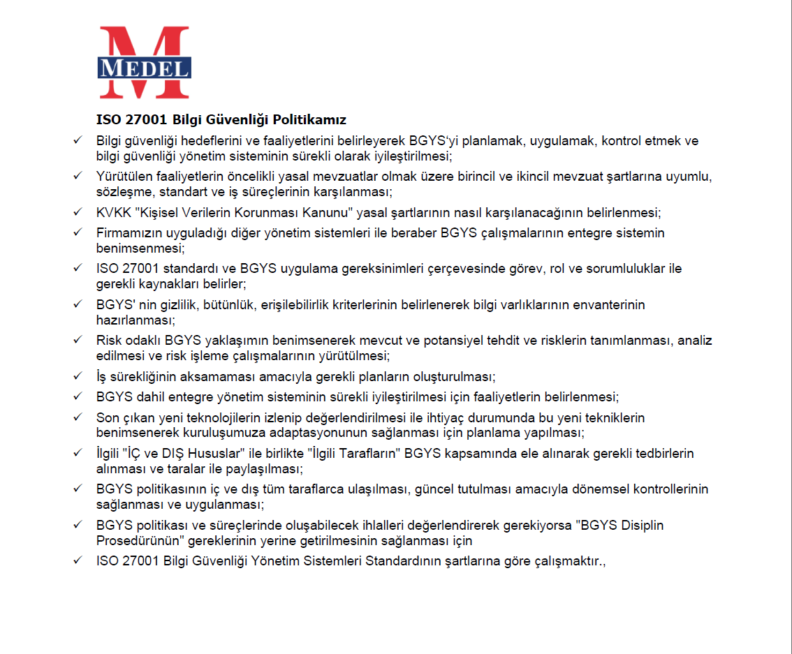 ISO 27001 Bilgi Güvenliği Politikamız